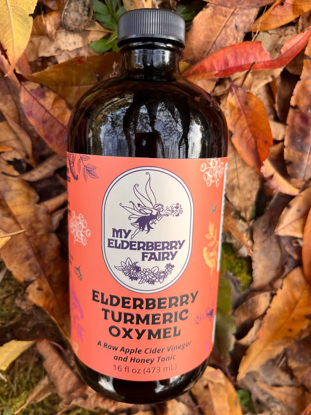 Our Elderberry-Turmeric Oxymel takes weeks to make, as we begin with Raw Organic Apple Cider Vinegar and slowly infuse it with organic Elderberries, Turmeric, Ginger, Cinnamon, Star Anise, Clove, and Black Peppercorns.