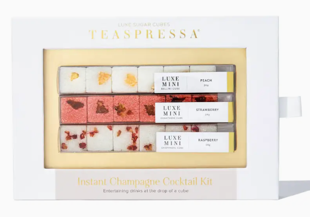 The three best brunch beverages, made better. Make custom champagne flavors effortlessly with our handcrafted, naturally-infused, mixology cubes. For softer flavor, use a single cube- for max flavour add two or more cubes and muddle.Our cubes can turn any quality of spirit into a fine cocktail. Set includes: Luxe Mixology Cube Minis in Strawberry, Raspberry, and Peach. Drop cubes in bubbly or muddle before pour for maximum flavor. Creates up to 18 drinks including the brunch favorite- Peach Bellini!