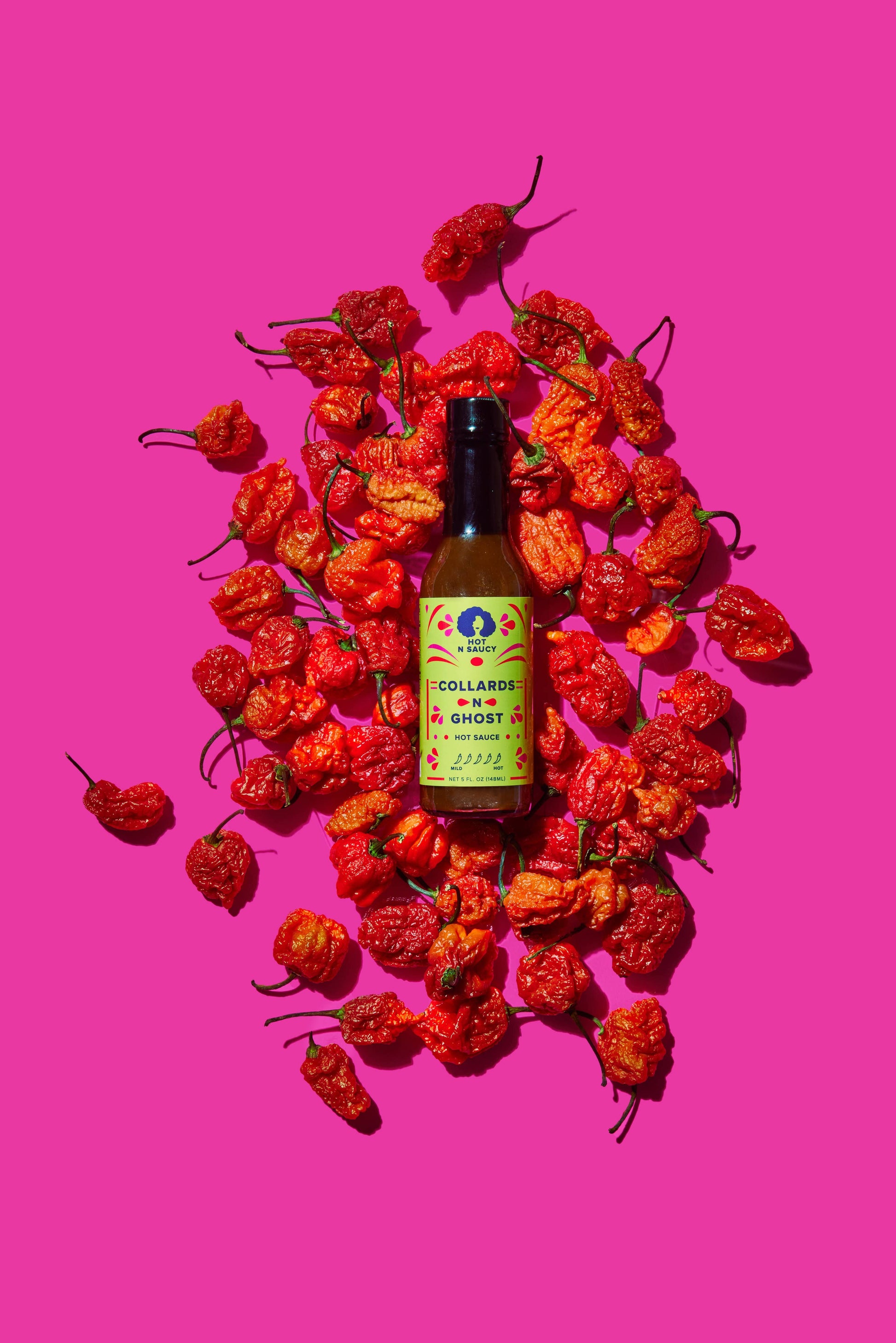 Featured on Season 18 of Hot Ones and Lizzo's favorite hot sauce! This flavor packed sauce tastes like when the Thanksgiving collards touch everything else on your plate. This potlikker-flavored hot sauce made with one of the world's hottest peppers will take your next meal out of the stratosphere with heat and FLAVOR!