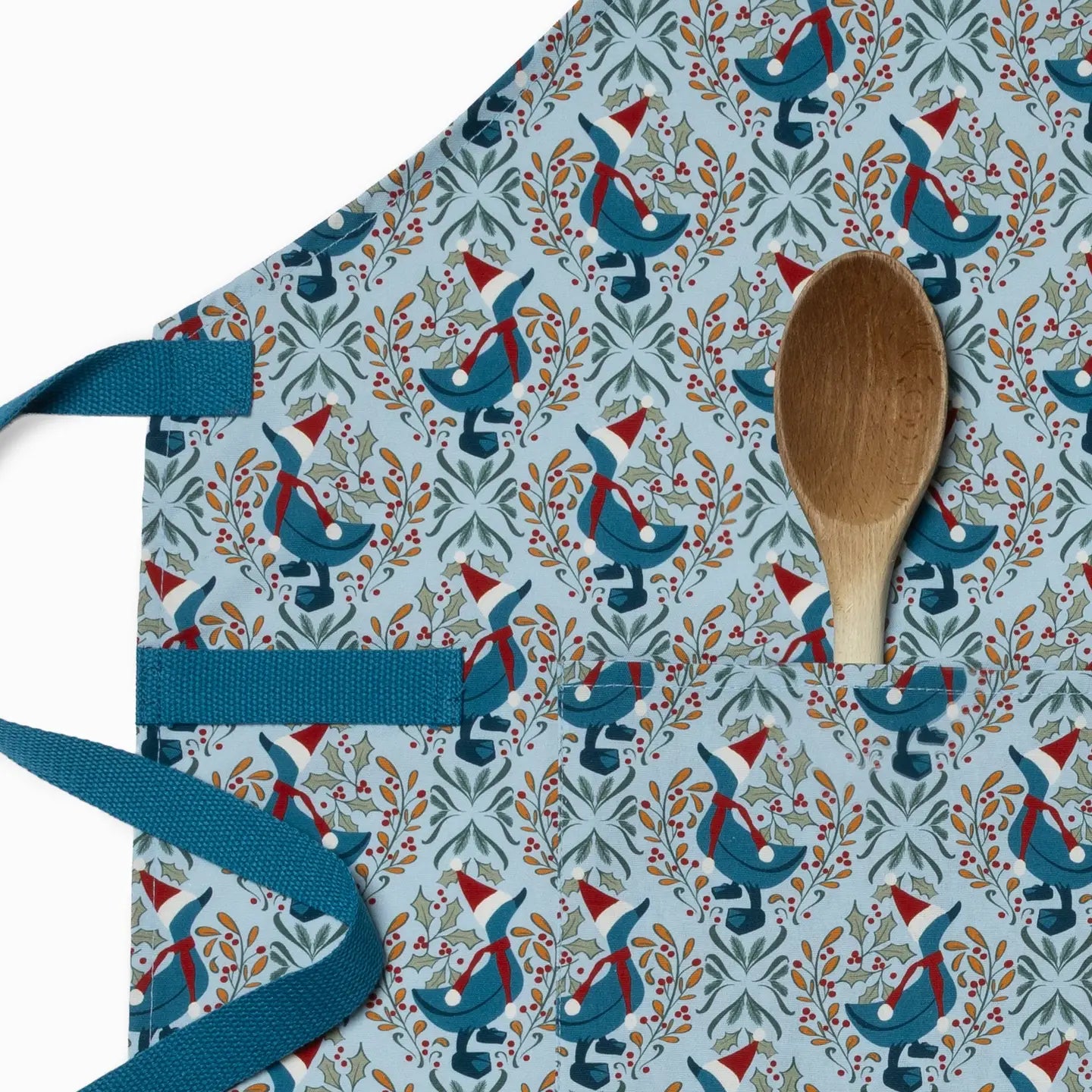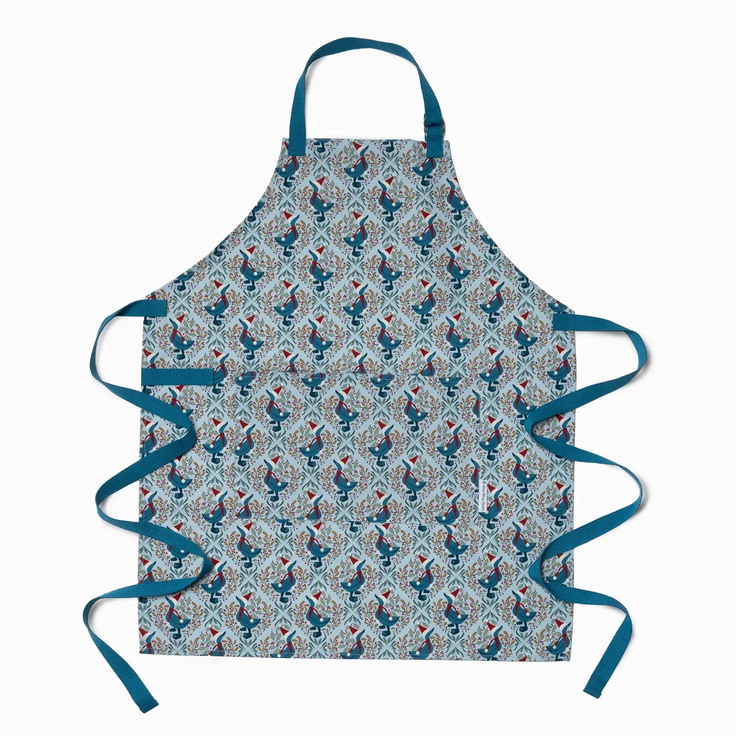 Made from soft, sturdy cotton canvas, this thoughtfully designed apron combines beauty, comfort, and everyday functionality. With a generous fit, adjustable neck, extra-long waist ties, and two roomy pockets, it’s designed to move with you—whether you’re cooking, baking with the kids, or tackling a creative project. A built-in loop keeps your towel or tools close, while Jennifer’s hand-drawn patterns ensure your customers look as good as what they're serving. Pair it with matching child aprons and kitchen towels for the perfect gift set. FEATURES: *Two front pockets (7.5” W x 9” D) *Adjustable neck *Canvas webbing loop (4” W) for towel or tools *Generous fit: 27” W x 32” L *Extra-long waist ties (44”) for a wide range of sizes *100% cotton canvas, digitally printed with Jennifer's hand-drawn patterns