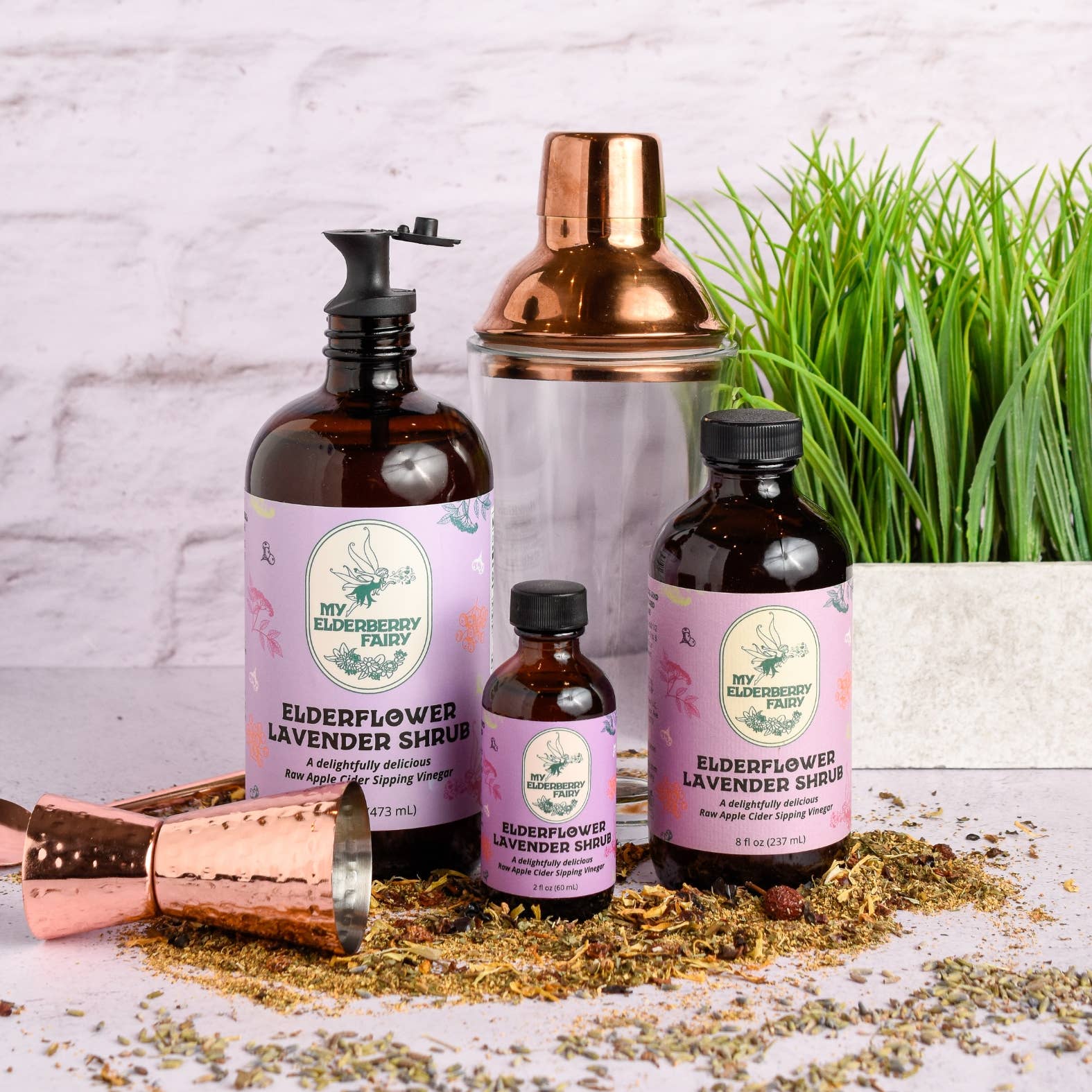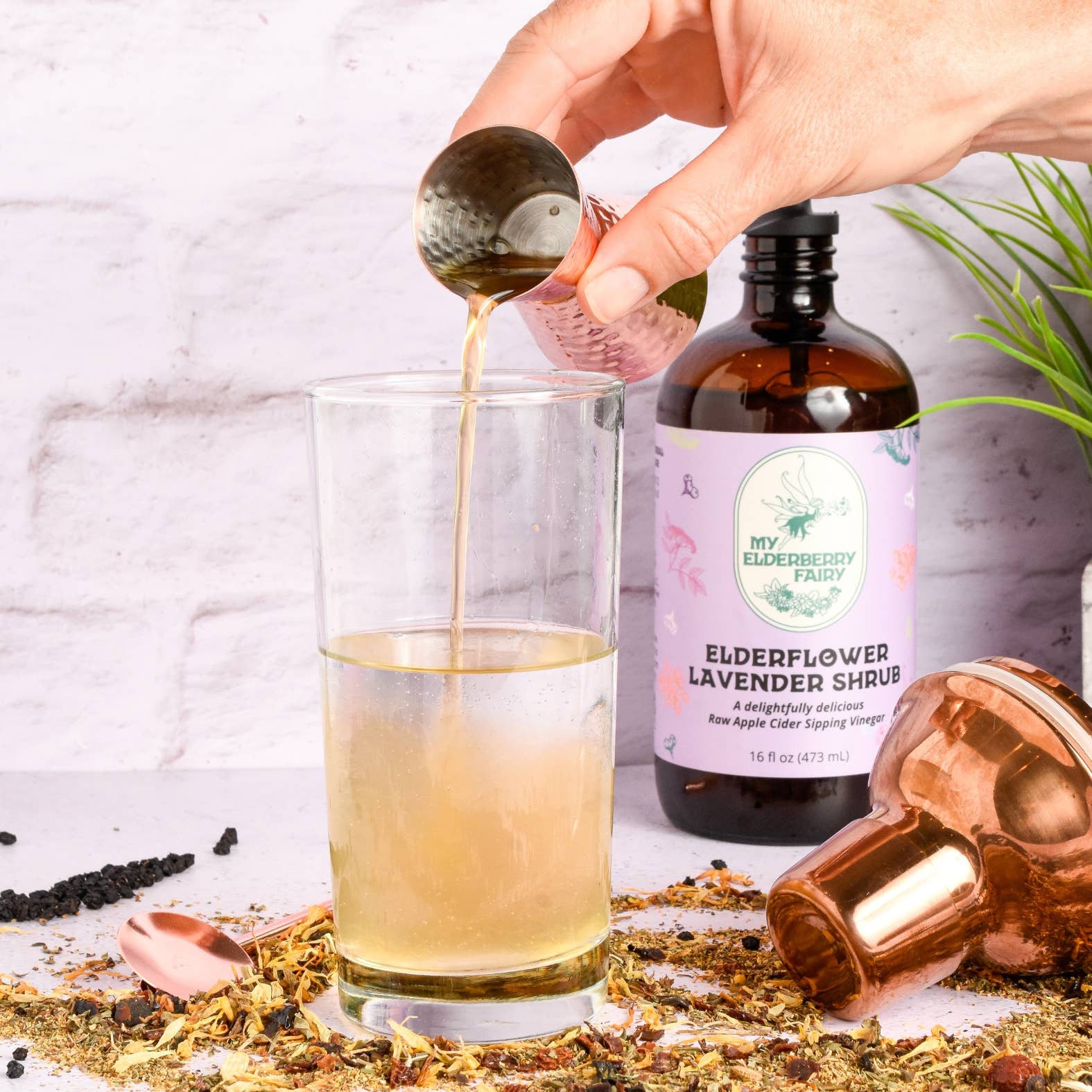 Rooted in tradition and reimagined for today, our Elderflower Lavender Shrub is a handcrafted organic sipping vinegar inspired by centuries-old herbal remedies. Originally used as a method of preservation and medicinal extraction, shrubs were made by infusing vinegar with fruits, roots, and herbs—a practice that predates refrigeration and supported digestive health and immune resilience. We’ve given this classic tonic a modern twist by sweetening it and blending it with raw, unfiltered apple cider vinegar, organic elderflowers, lavender, and other botanicals to create a vibrant, health-forward elixir.