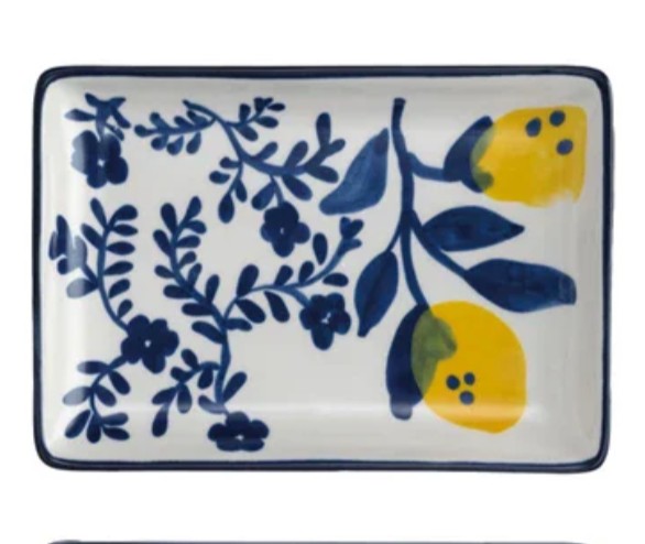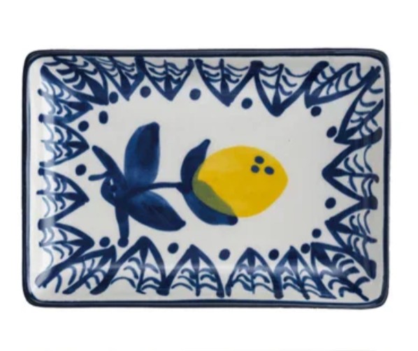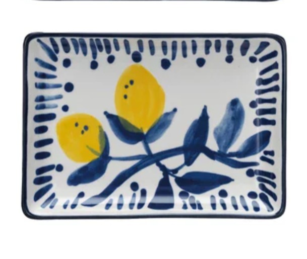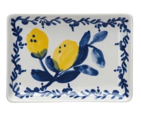 6"L x 4-1/4"W Hand-Painted Stoneware Dish w/ Lemons, White, Blue & Yellow, 4 Styles