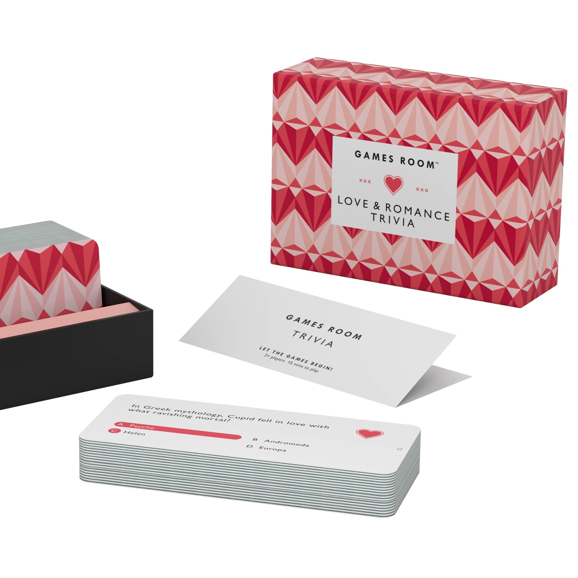 All you need is love with these romantic trivia questions, perfect for at-home or on-the-go! Packaged in an eye-catching box featuring a beautiful geometric pattern, these 140 questions are all about love and romance. Ranging from pop culture and historical trivia, to romantic holidays, lore, and other factoids, spread the love with friends, family, and significant others!