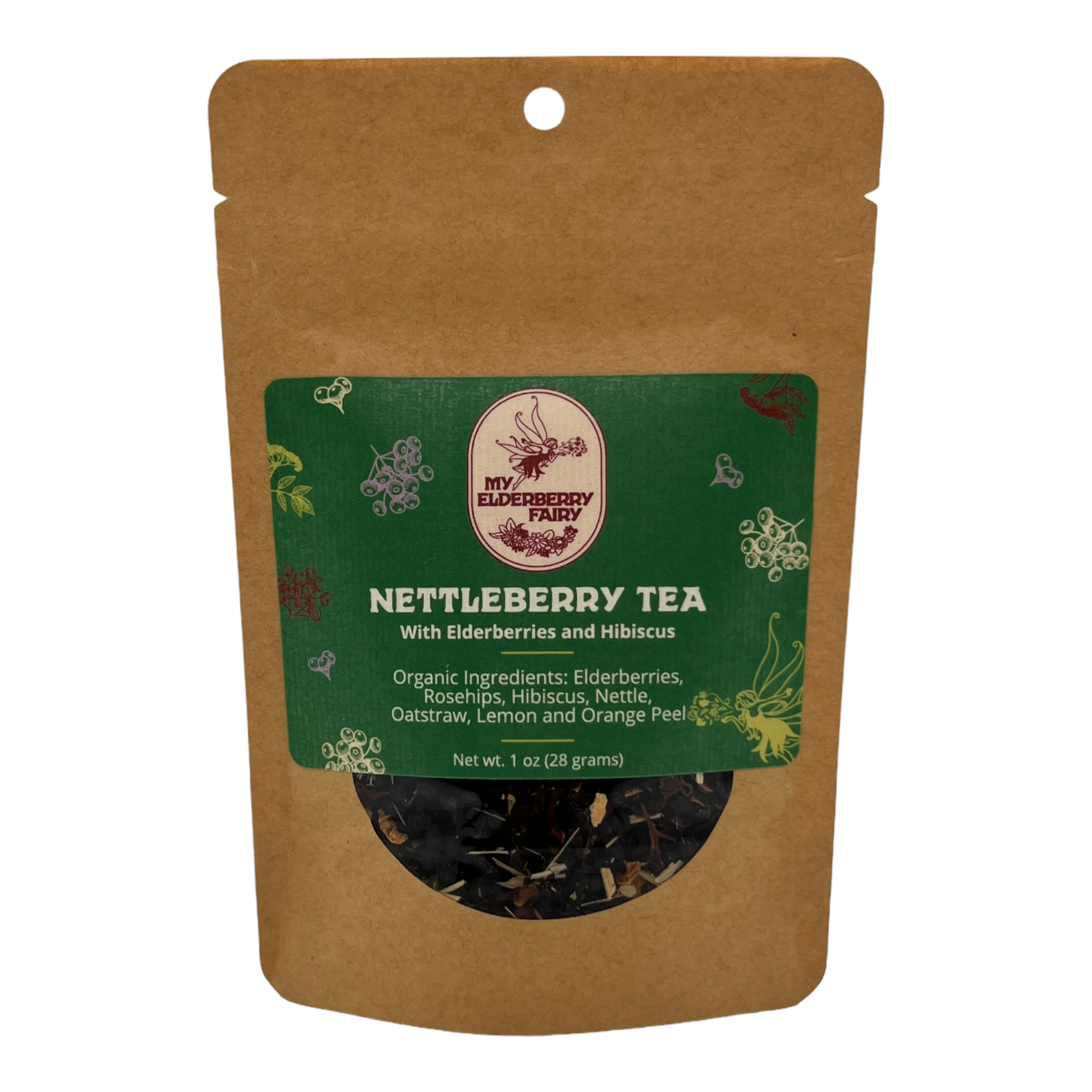 Support your body and soothe your senses with our Herbal Nourishment Tea, a vibrant blend of organic elderberries, nettle, oatstraw, rosehips, hibiscus, lemon, and ginger. Rich in vitamins, minerals, and antioxidants, this caffeine-free infusion is designed to promote immune health, nervous system support, and gentle detoxification—all while delivering a naturally tart and warming flavor.
