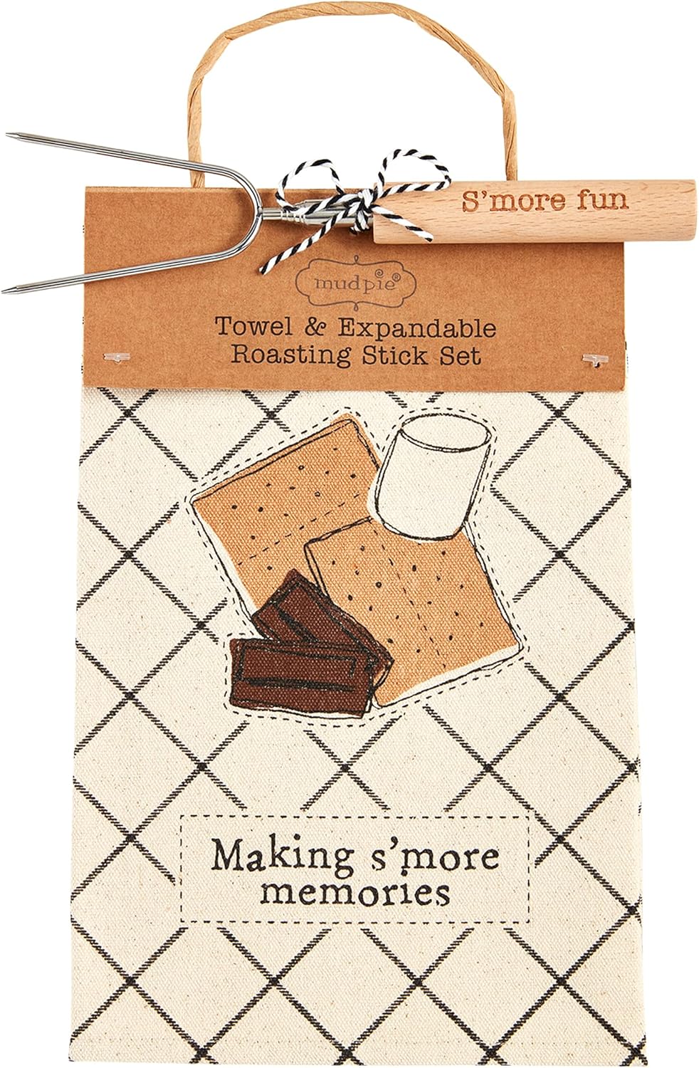 The White Smore Towel And Stick Set consists of a canvas patch cotton towel and a roasting skewer made of stainless steel and wood. The towel is crafted from 94% cotton and 6% other fibers. To maintain its quality, it is advised to hand wash the set and utilize non-chlorine bleach if necessary. For drying, the towel should be hung on a line, and when ironing, it is recommended to do so on the reverse side only.