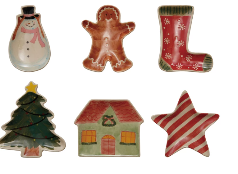 Approximately 4"L Hand-Painted Stoneware Holiday Shaped Dish, Multi Color, 6 Styles